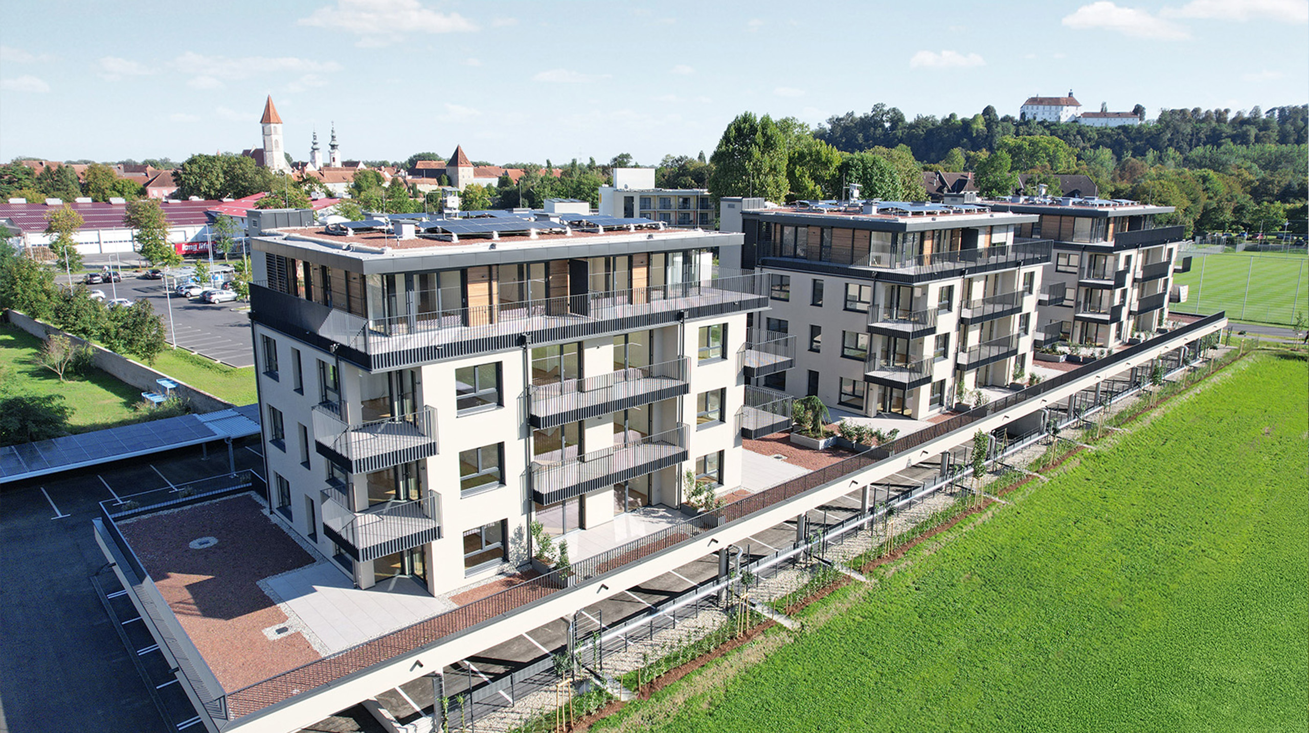 Die Häuser sind mit einer Photovoltaikanlage ausgestattet und die Heizung erfolgt über das örtliche Nahversorgungsnetz der BIOWÄRME Quelle Bad Radkersburg.