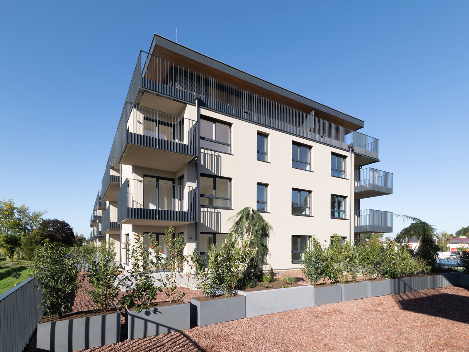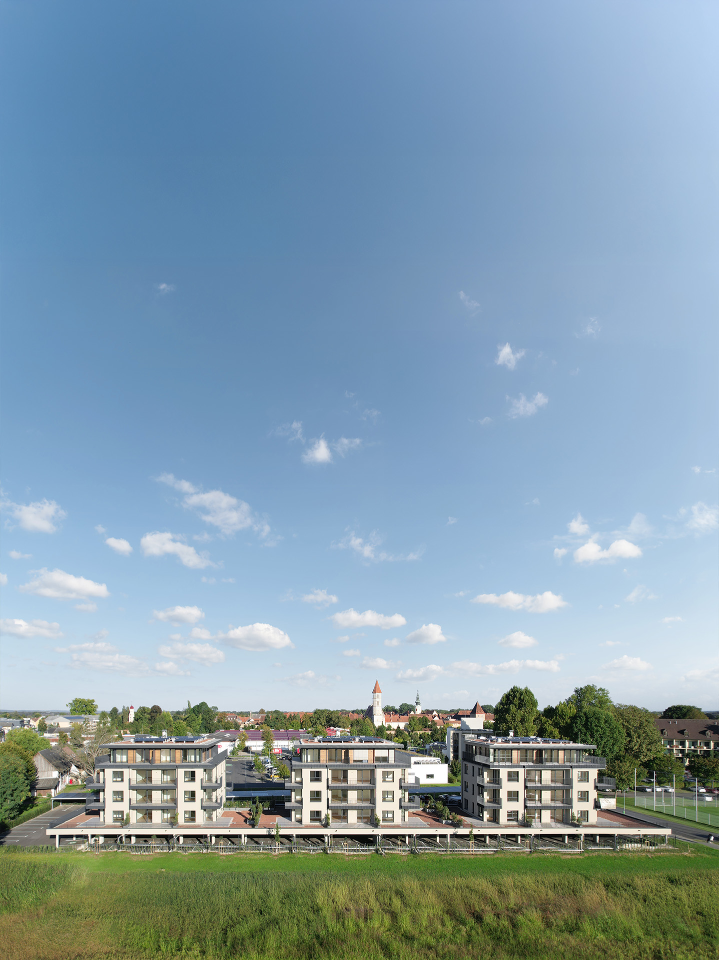 Jeder Wohnung wird ein Kellerabteil zugeordnet, überdachte Autostellplätze sind im Erdgeschoß im Gebäude integriert, ein barrierefreie Zugang mittels Aufzug je Bauteil ermöglicht einen komfortabel Zugang zu den jeweiligen Tops.